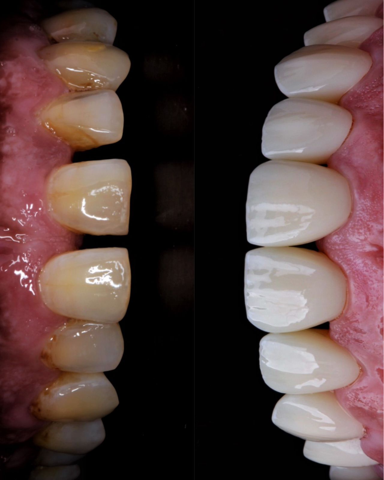 اصفرار الأسنان (في الحالات التي لا يمكن علاجها بجلسات التبييض بالليزر).