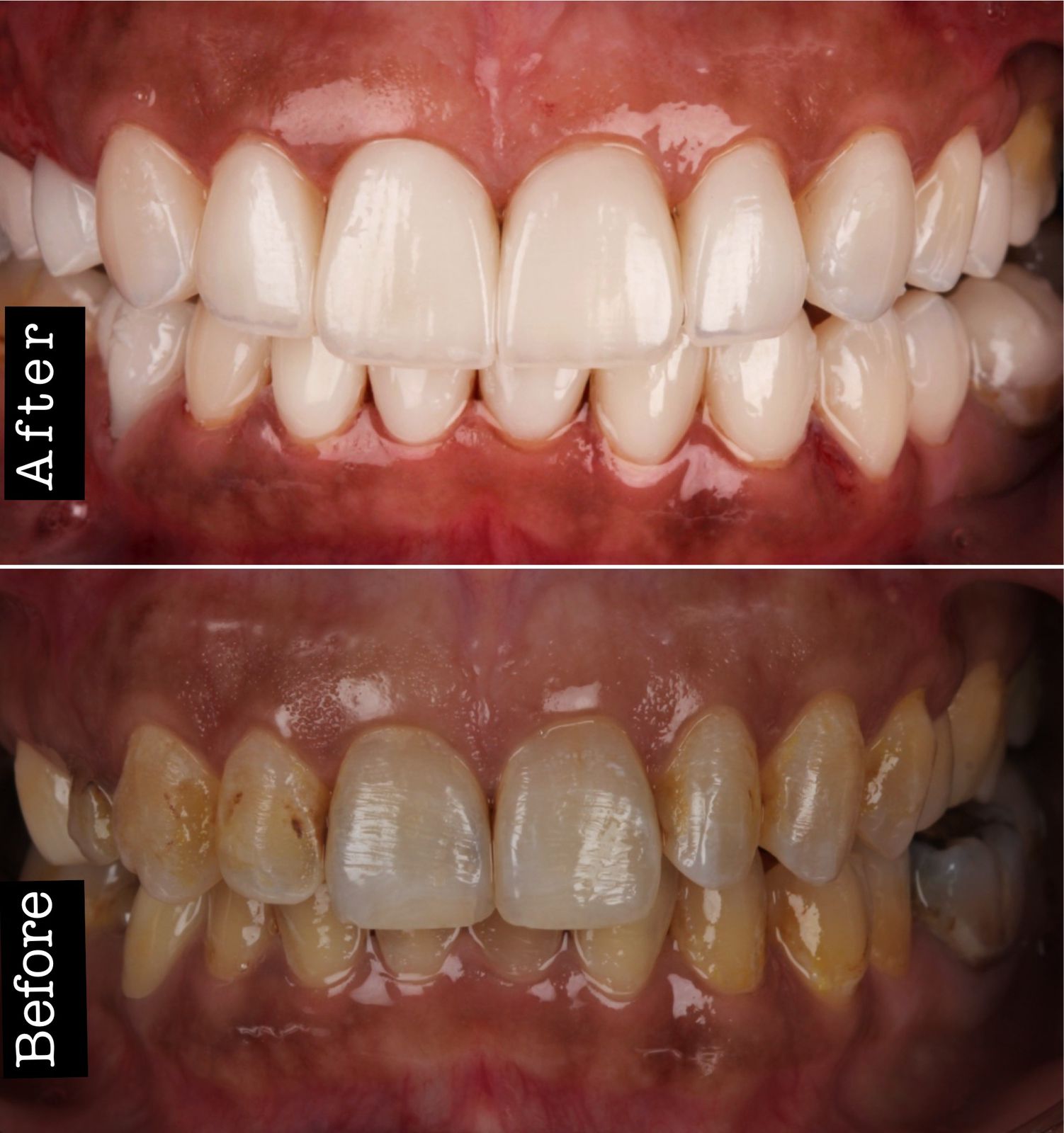 اصفرار الأسنان (في الحالات التي لا يمكن علاجها بجلسات التبييض بالليزر).